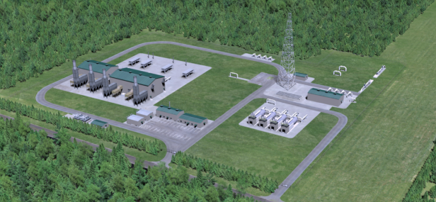 DOMINION A conceptual rendering of the proposed 53,515 horsepower compressor station includes many changes from a previous graphic, including additional buffers along Route 56, the relocation of some buildings and a communications tower.