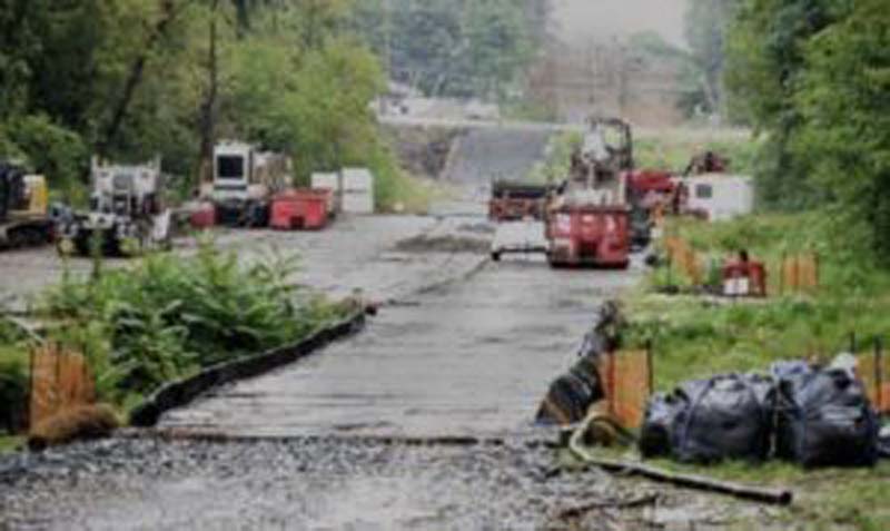 This view from N. Cornwall Rd. shows the progress of pipeline construction. A bridge spans Snitz Creek. (Photo: Michael K. Dakota, Lebanon Daily News)