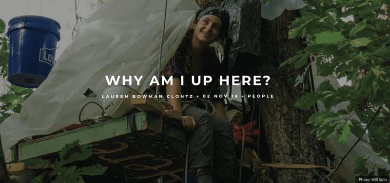 So I am standing up for those communities by standing in the way of the pipeline, here in the trees near Elliston, Va, on one of the last sites that the pipeline companies have not cleared. I hope that people will see that we have the power to create change with our voices and our courage.