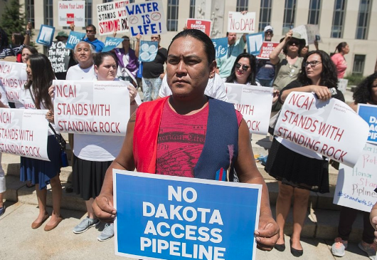 They were joined in protest by a group of about 300 who gathered outside the U.S. District Court for the District of Columbia on Wednesday to urge Judge James Boasberg to issue the injunction. That group included environmental activists and celebrities, including Susan Sarandon.