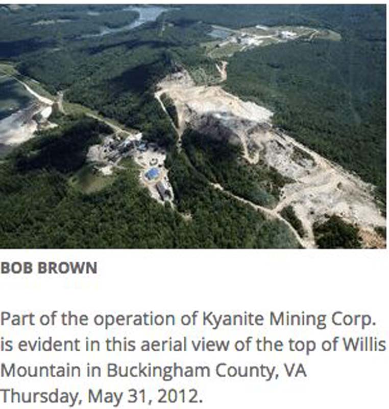 of Virginia. The published notice in the Farmville Herald newspaper stated that the permit regards the addition of equipment related to the transmission of natural gas and PPG in the area of the Willis Mountain complex. The address is noted as Kyanite Mining Corporation, 30 Willis Mt. Plant Lane, Dillwyn, VA 23936.