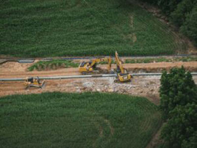 An aerial view of Mariner East 2 construction in rural Pennsylvania. Construction of the pipeline has resulted in dozens of incidents where drilling mud was released into surface water and groundwater aquifers.