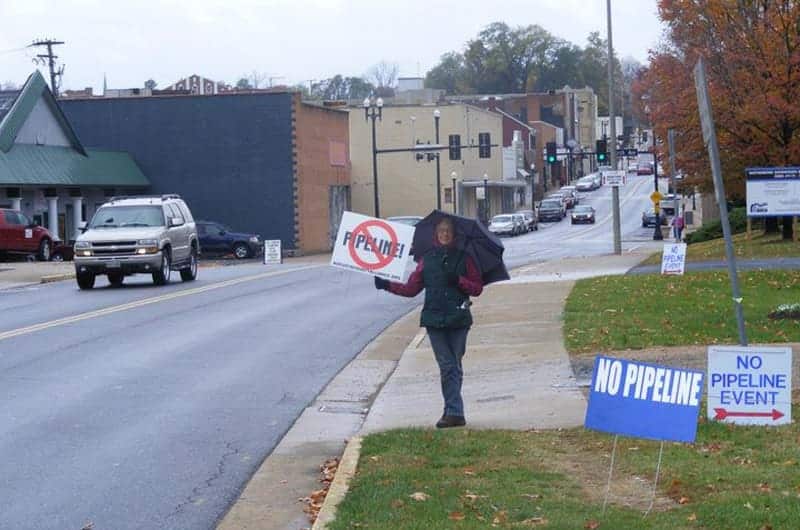 Nancy Beall, of Harrisonburg, Va., protests the proposed Atlantic Coast Pipeline in the Shenandoah Valley town of Waynesboro, Va., on November 1, 2014. “They are going to ruin our beautiful forest,” Beall said. (Sean Cockerham/MCT)