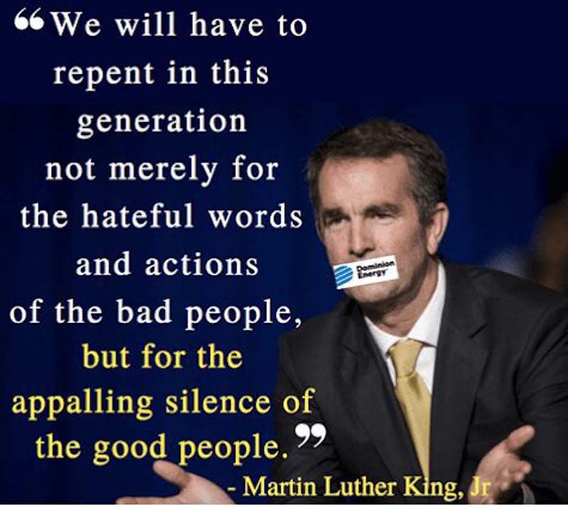 Ralph Northam seems to have found the time and motivation to speak out on everything from the view from Mount Vernon to his views on oysters. Meanwhile, two of those closest to Northam, his Chief of Staff Clark Mercer and his Secretary of Natural Resources Matt Strickler, have demonstrated not only tone deafness but little inclination to do anything for the people of Union Hill and many other front-line communities.